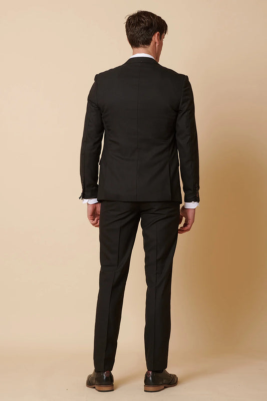 A three-piece suit includes a jacket, trousers, and a waistcoat, offering a refined and complete look. The waistcoat adds an extra layer of sophistication, maintaining a sharp appearance even without the jacket. This style creates a structured silhouette, perfect for formal events, weddings, or when you want to elevate your everyday style with classic elegance.