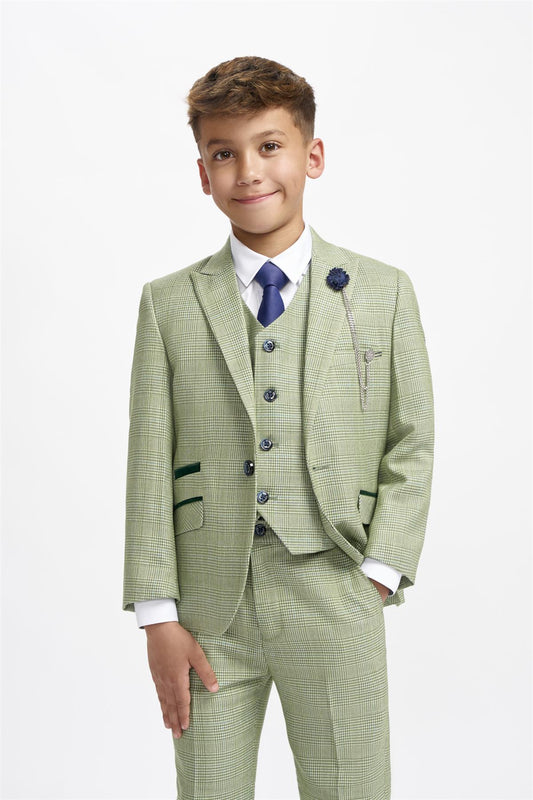 Boys’ checked suits add a modern, bold touch to formal attire. Perfect for weddings, parties, or special occasions, the unique pattern brings a fresh look while maintaining a polished, sophisticated appearance. Ideal for making a statement without sacrificing style.