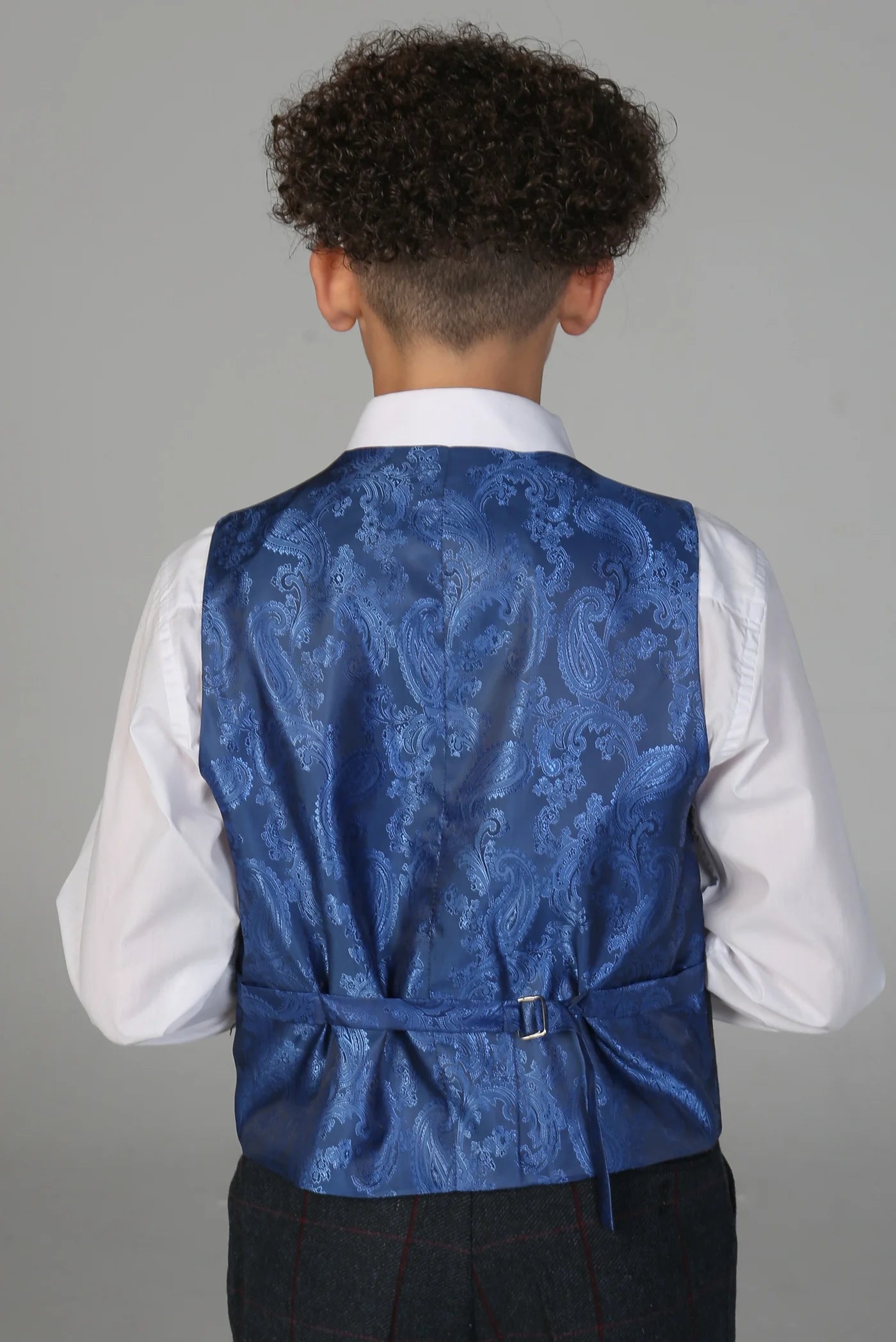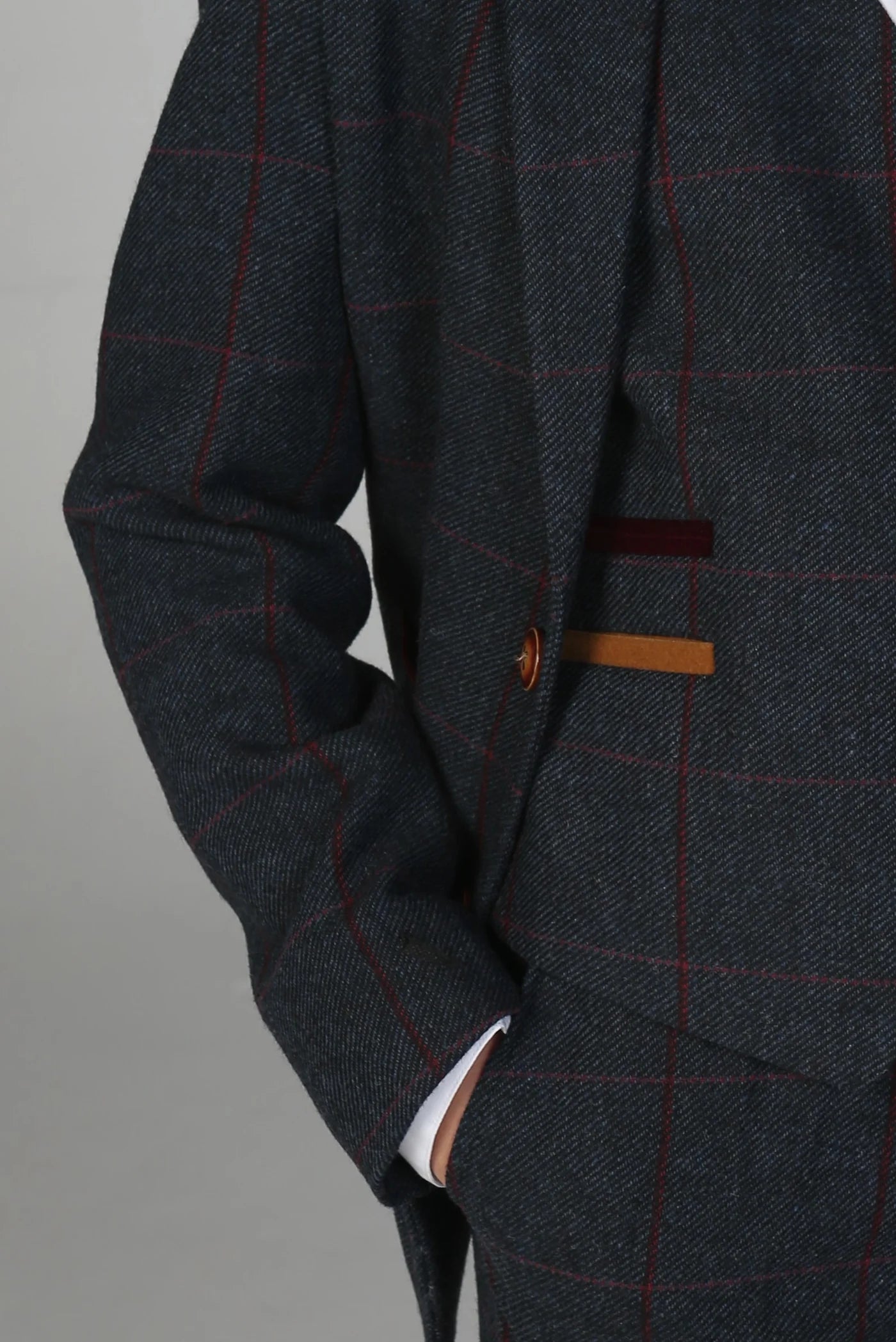 Get your young gentleman ready for any special occasion with our Boys Madrid Navy 3 Piece Suit. With its classic navy tweed design and eye-catching wine check detail, this suit is sure to impress. Complete with elegant brown accent buttons, this 3 piece suit is the perfect blend of sophisticated and stylish.