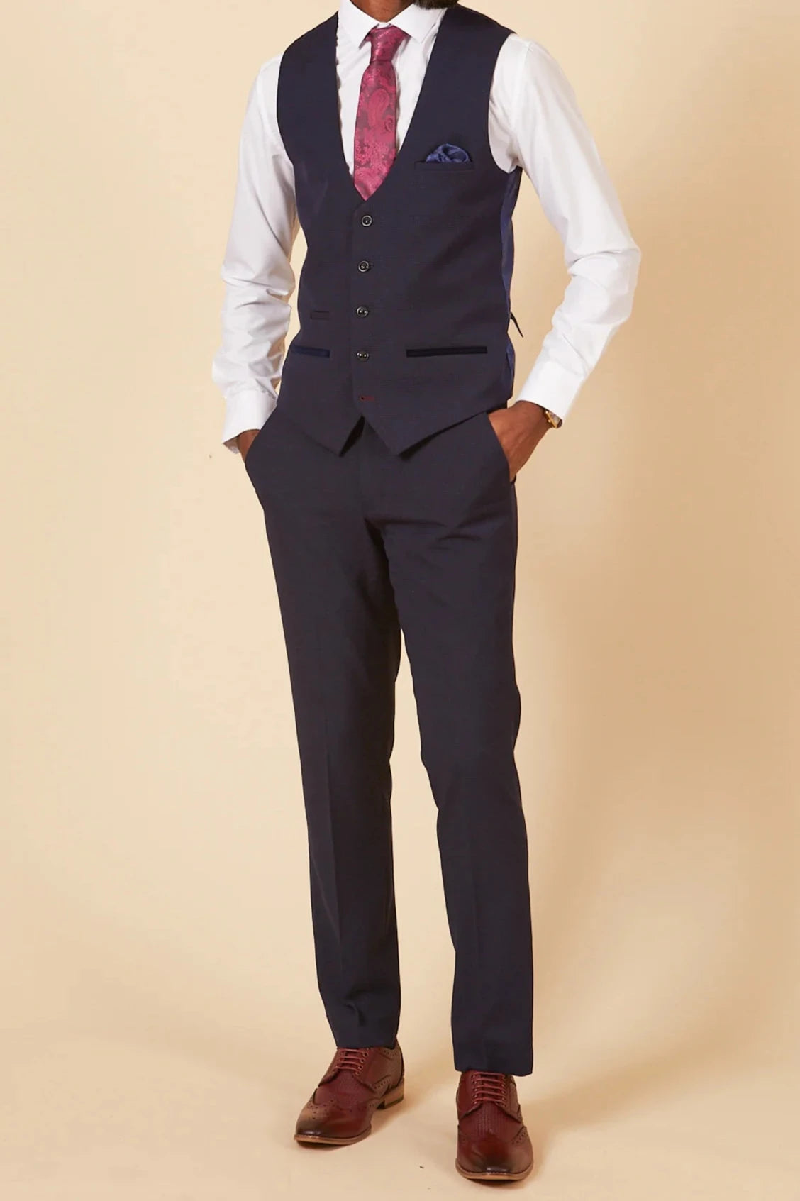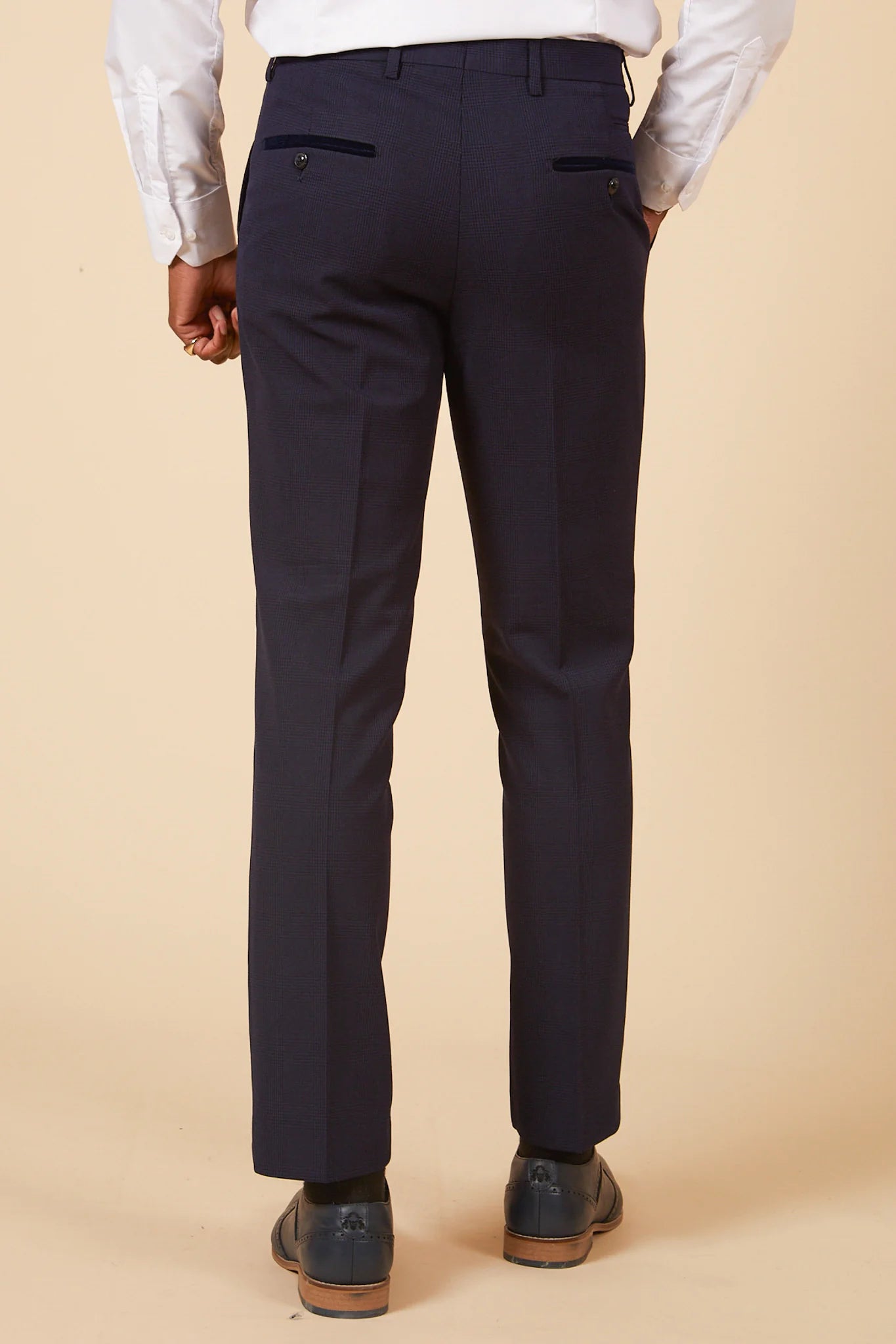 These Bromley navy trousers are a must-have for any stylish wardrobe. Made with a classic checked design, they are perfect for both formal and casual occasions. Crafted with a comfortable fit, these trousers will keep you looking sharp and feeling confident all day long.