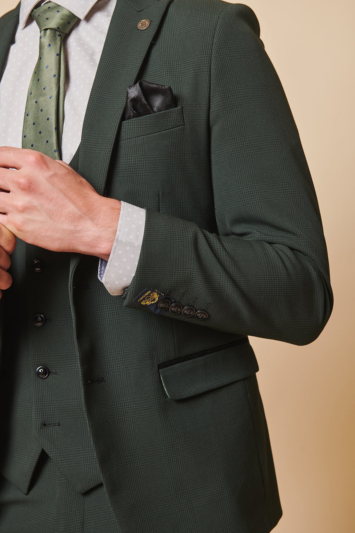 Elevate your wardrobe with our Bromley Olive 3 Piece Suit. Featuring a classic single breasted design and a stylish olive check pattern, this ensemble is perfect for any occasion. Look sharp, feel confident, and make a statement with this must-have suit.