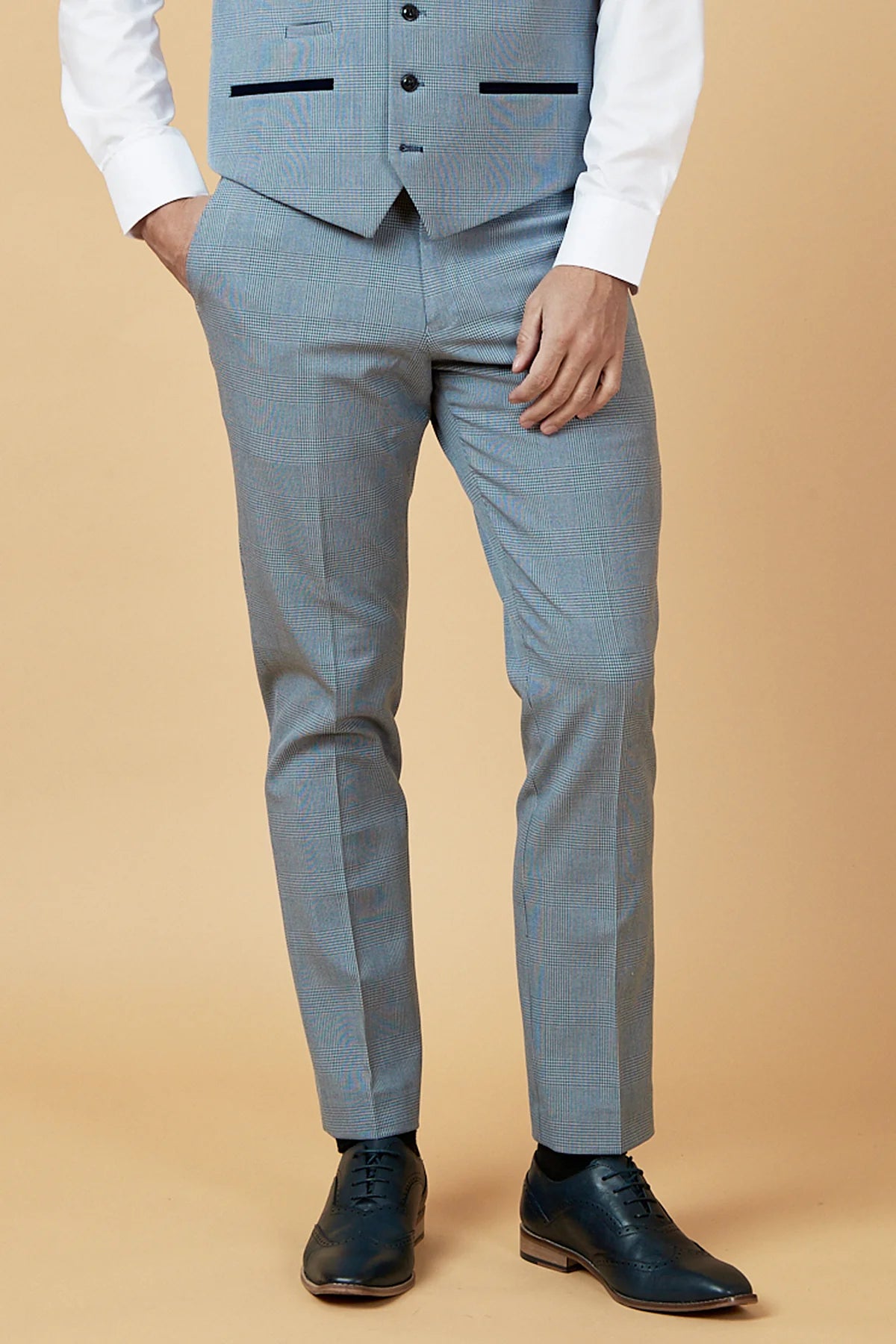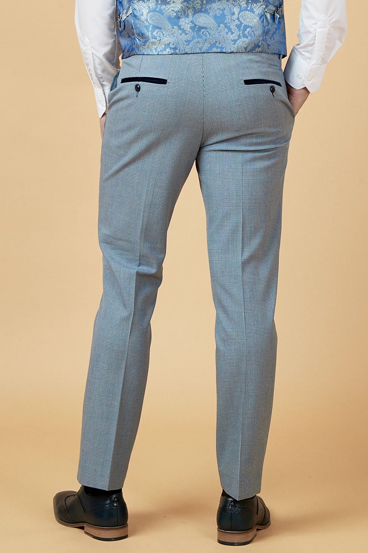 Elevate your style with our Bromley Sky Trousers! This pair of checked sky blue suit trousers adds a touch of sophistication to your wardrobe. Crafted with quality materials, they offer both comfort and style. Perfect for any occasion, these trousers are a versatile addition to your collection.
