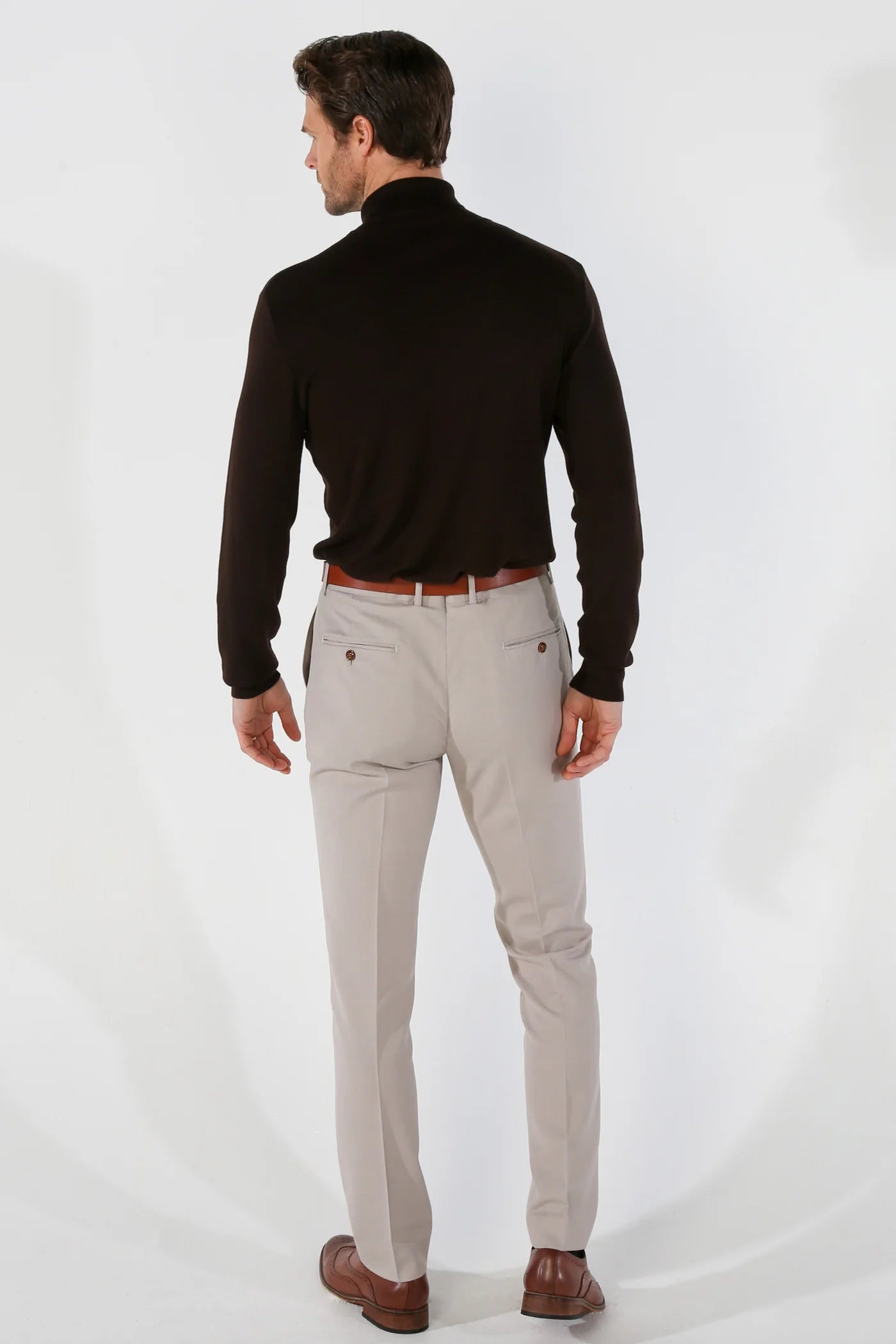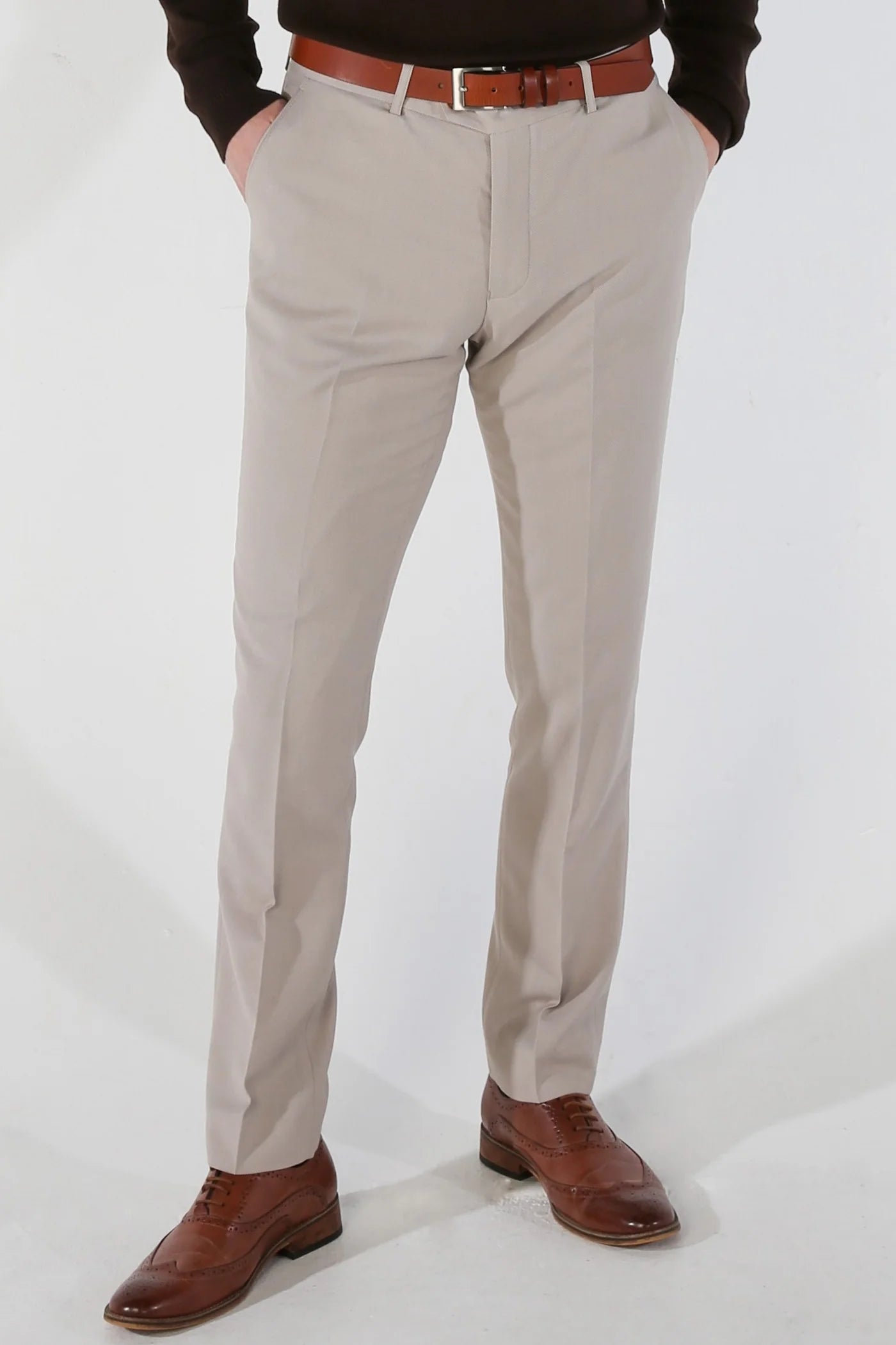 Elevate your professional wardrobe with the Mayfair Stone Trousers. Crafted in a versatile stone colour, these suit trousers feature brown accent buttons and a slim tapered fit for a sleek and modern look. Perfect for any business setting, these trousers will provide a confident and polished appearance.