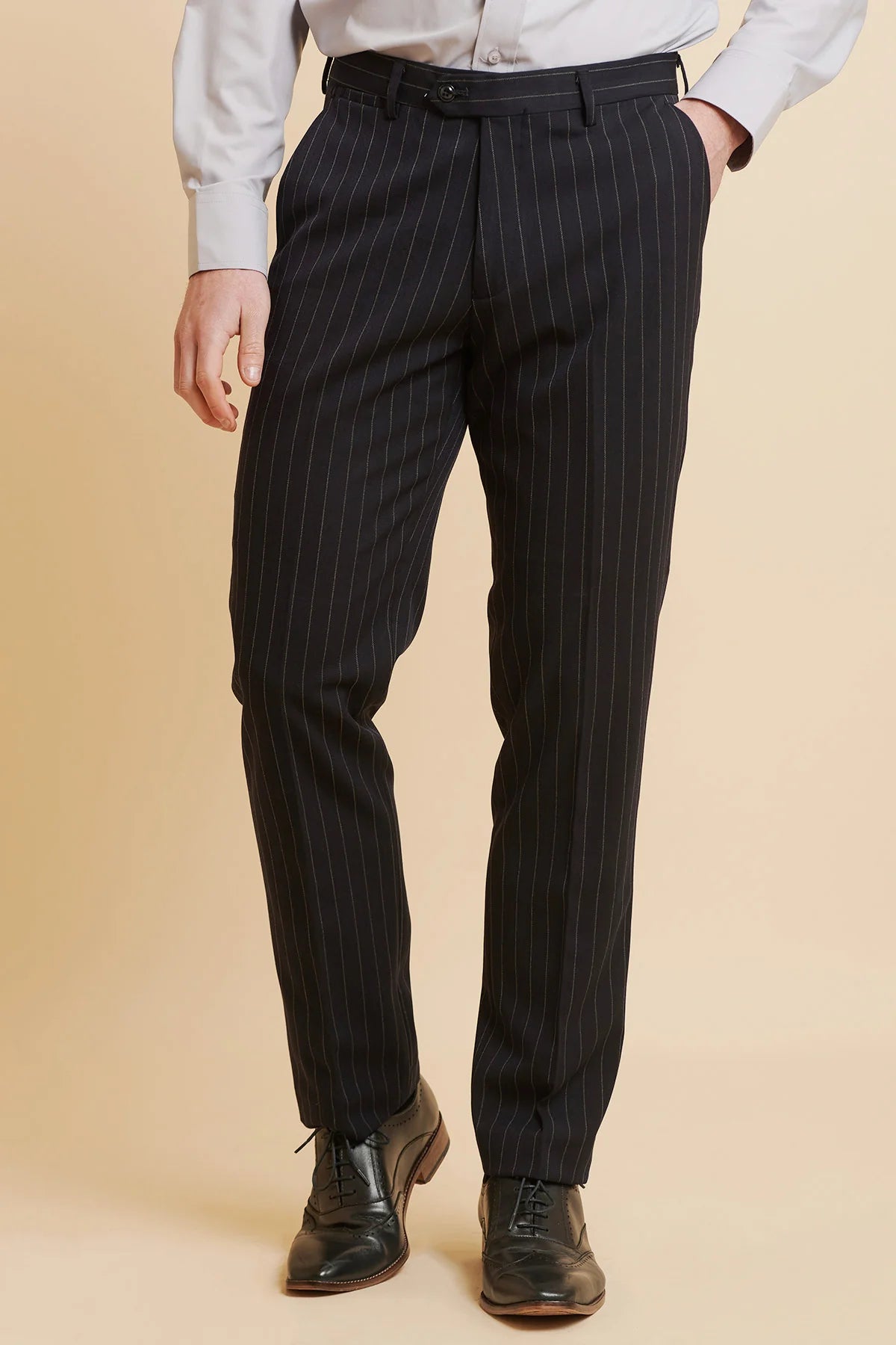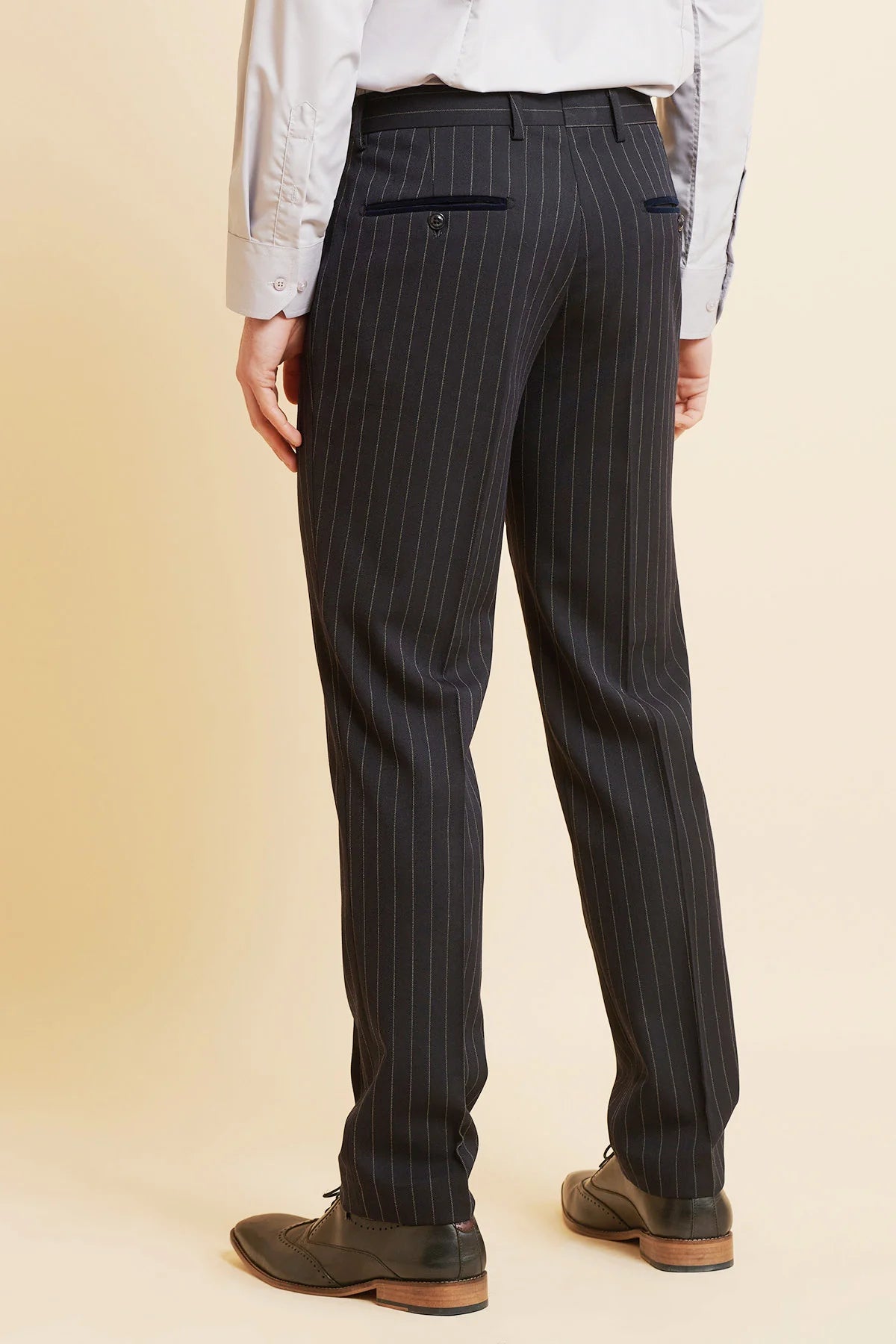 Elevate your professional wardrobe with our Rocco Navy Pinstripe Trousers. Featuring a classic pinstripe design, these trousers exude sophistication and style. Made with high-quality materials, they offer a comfortable and polished look. Perfect for any formal or business occasion, they will leave a lasting impression.